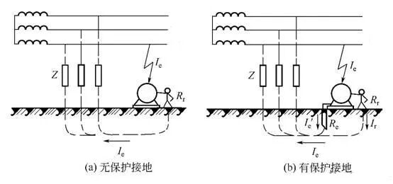 我们将电器设备做了接地保护,则出现单相接地短路或漏电故障时会在线路中产生较大的短路电流或漏电电流,从而使上级保护器件(断路器或漏电断路器)动作脱扣,自动切断故障线路电源,以便及时进行检查维修。这样就避免了电器设备漏电状态运行对人身(或设备)构成的威胁。